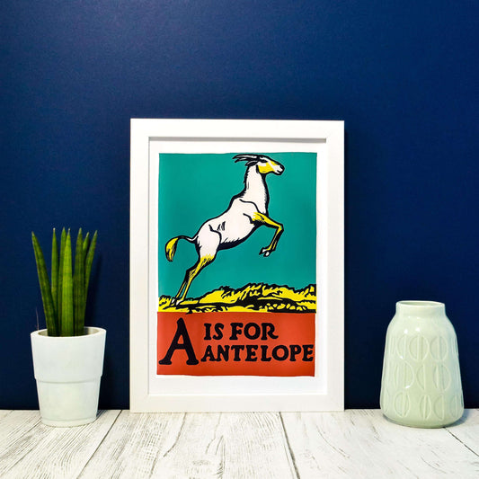 A is for antelope alphabet print, letter poster A nursery prints