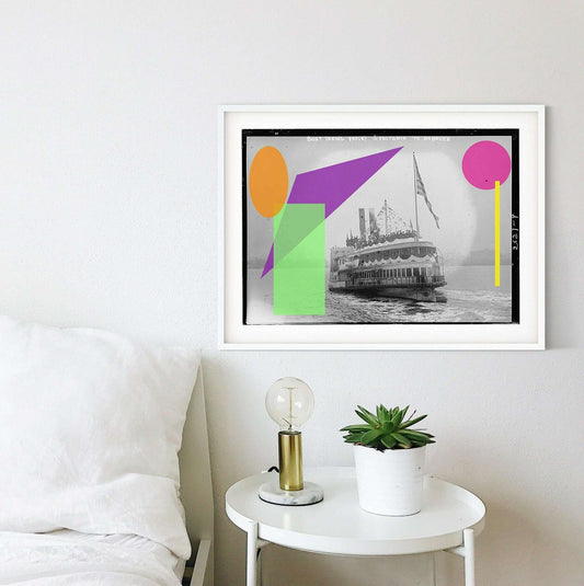 Altered vintage boat Photo, altered digital art ferry boat print