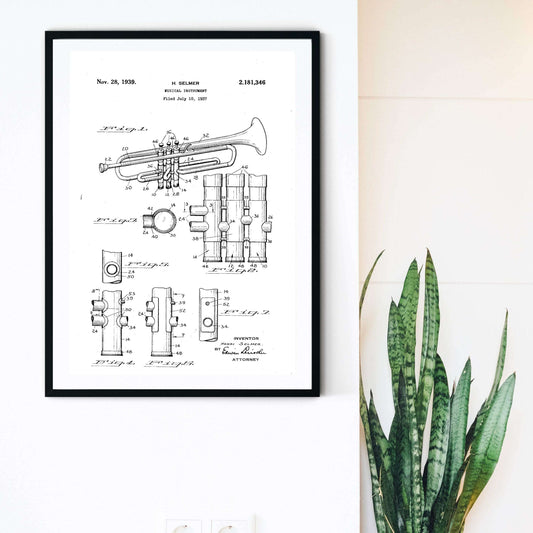1939 Trumpet patent print, Vintage Trumpet Poster, Jazz Gift