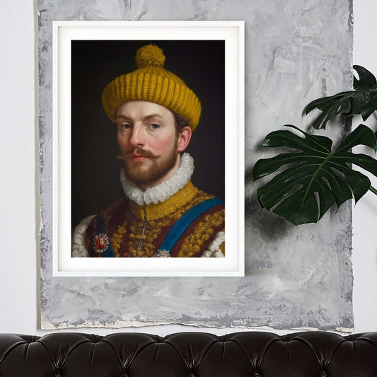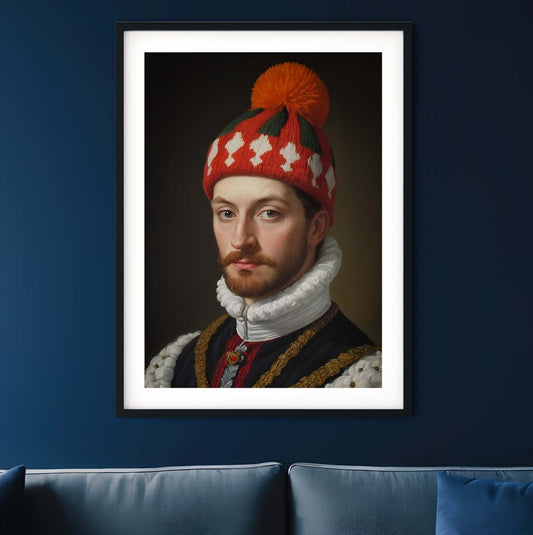 Bobble hat print renaissance quirky wall art gothic print