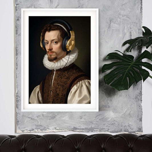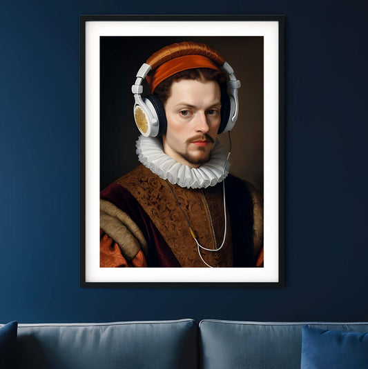 Headphones print renaissance quirky wall art gothic print