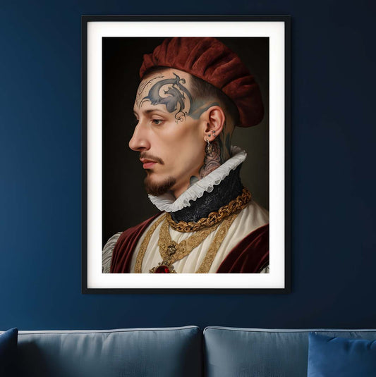 Antique Oil Painting Renaissance Man tattoo prints quirky wall art