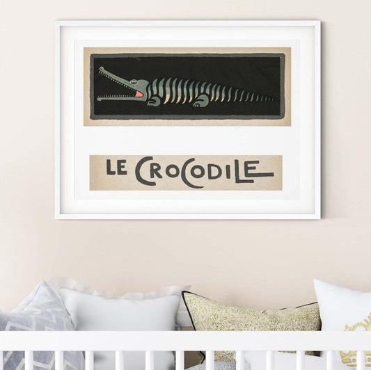 Crocodile Illustration Print, Le Crocodile French Nursery Animal Print