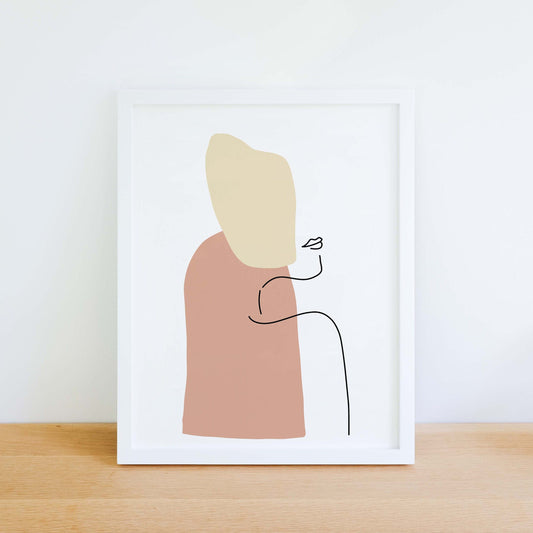 Framed Face Female Line Drawing Print, Minimal Portrait Line Colour Block boho print 1 wall art, woman line art abstract minimalist poster