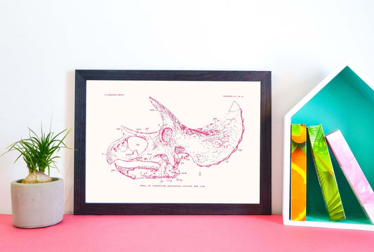 Framed Pink Triceratops skull print, dinosaur art print, Triceratops art skeleton print, dinosaur decor, dinosaur bones A4, A3, A2
