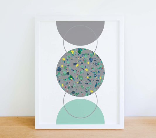 Framed Neutral Circle Terrazzo green and grey Abstract Art Print, Minimal Geometric Colour Block Print Neutral Wall Art, modern minimalist