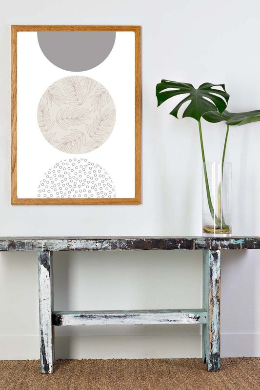 Framed Neutral Circle Textured Leaves Abstract Art Print, Minimal Geometric Colour Block Print Neutral Wall Art, modern minimalist