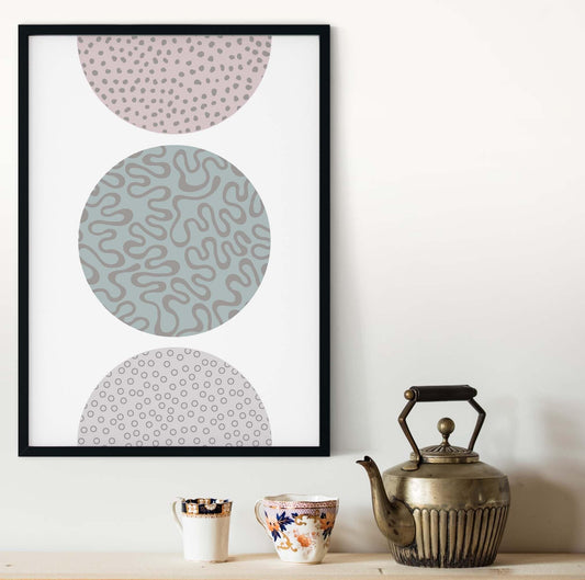 Framed Neutral Circle Textures Abstract Art Print, Minimal Geometric Colour Block Print Neutral Wall Art, modern minimalist