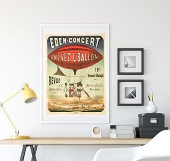 Framed print Hot air balloon art poster, vintage balloon art print, old aviation, antique french print Blimp poster