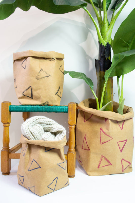 Hand painted brush stroke paper planter, washable paper bag, nordic style eco paper storage, modern storage bathroom organizer