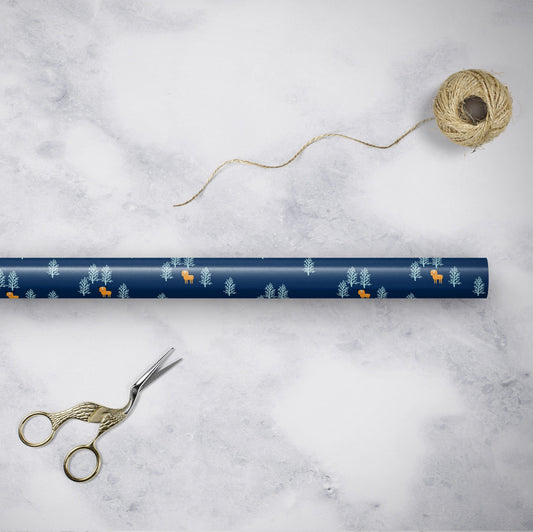 Navy Blue Christmas Wrapping Paper Set, Christmas Reindeer gift wrap