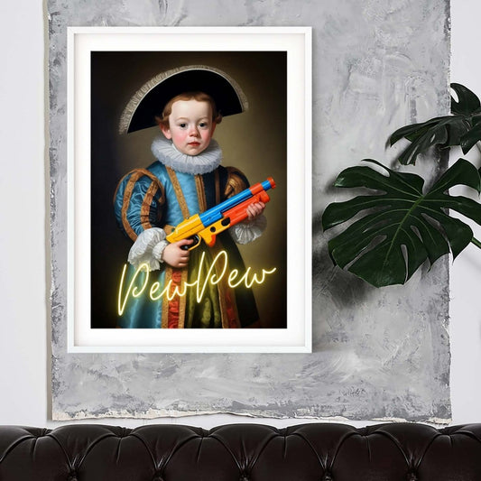 Pew Pew water gun neon art, altered art funky print