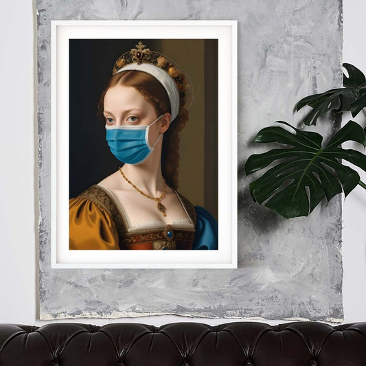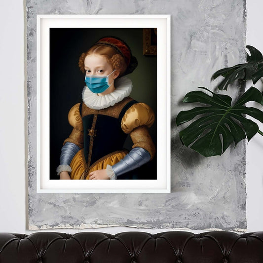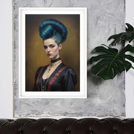 Blue Hair renaissance quirky wall art colourful altered art print