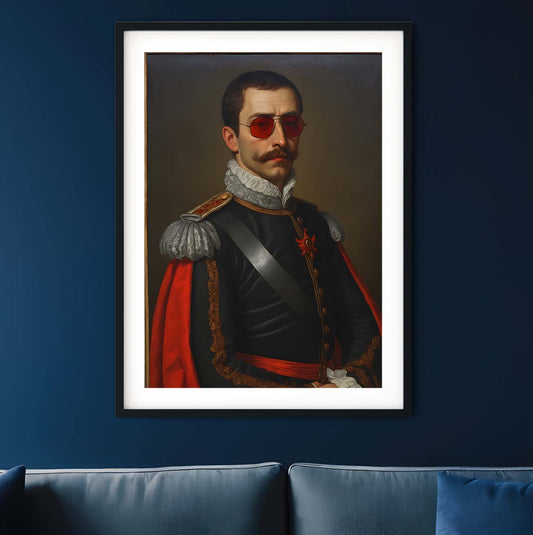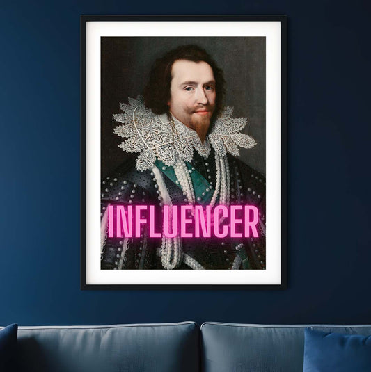 Influencer man neon art, altered art antique oil painting print