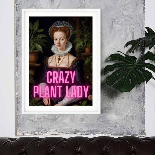 Crazy plant lady neon art, altered art funky print