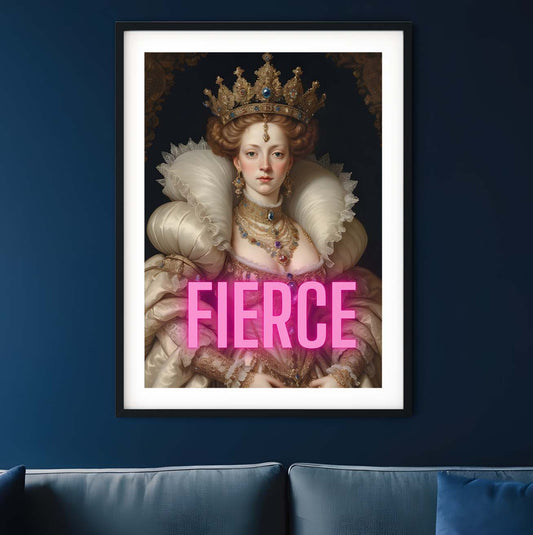 Fierce Queen neon art, altered art funky print