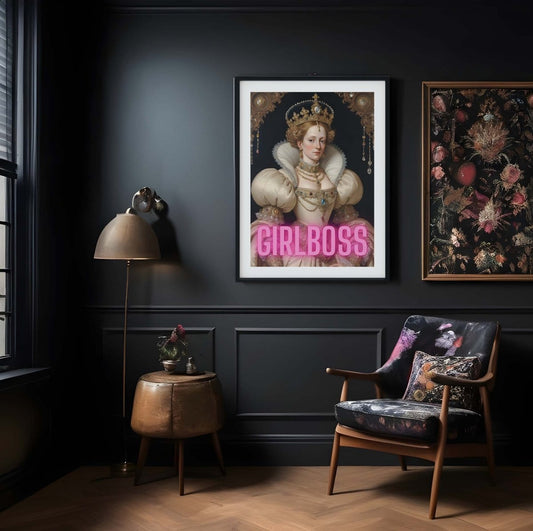 Girlboss queen neon art, Girl boss altered art print