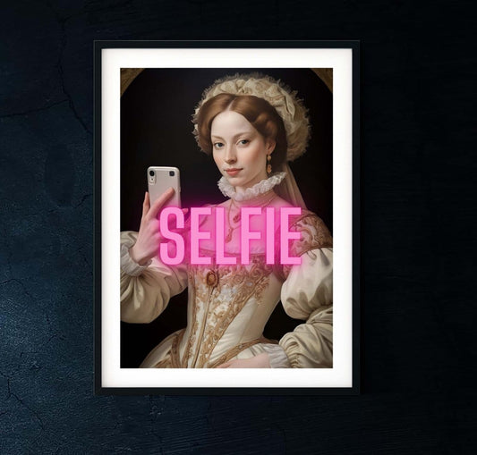 Selfie queen neon art, altered art funky print