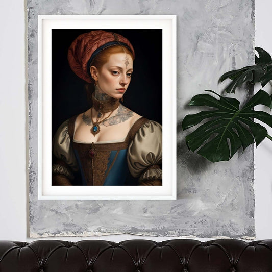 Bobble hat print renaissance quirky wall art gothic print