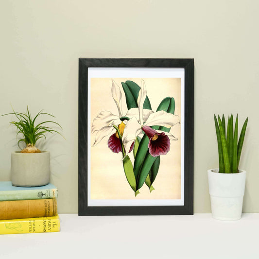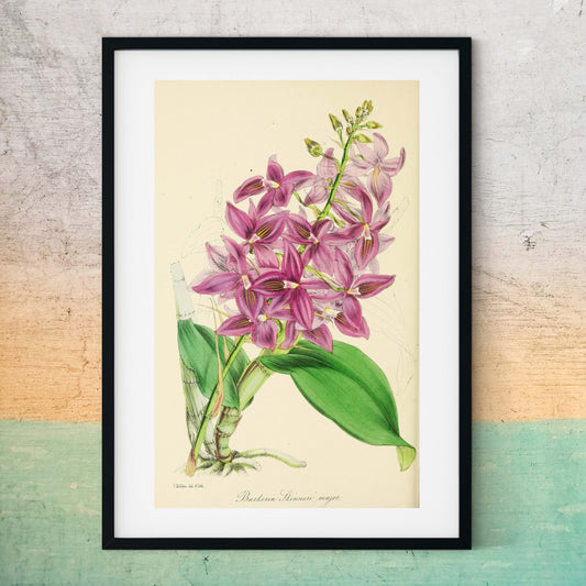 Pink Orchid Flower art, Antique Framed Botanical Prints