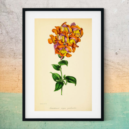 Pink snapdragon flower print, orange & pink flower art Botanical Print