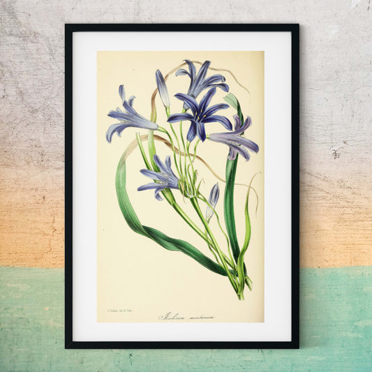 Purple flower print, cornflower vintage flower art framed Botanical Print