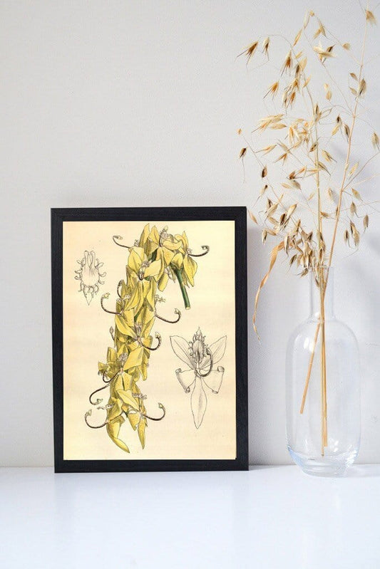 Orchid Yellow Flower Art, Framed antique Botanical Prints
