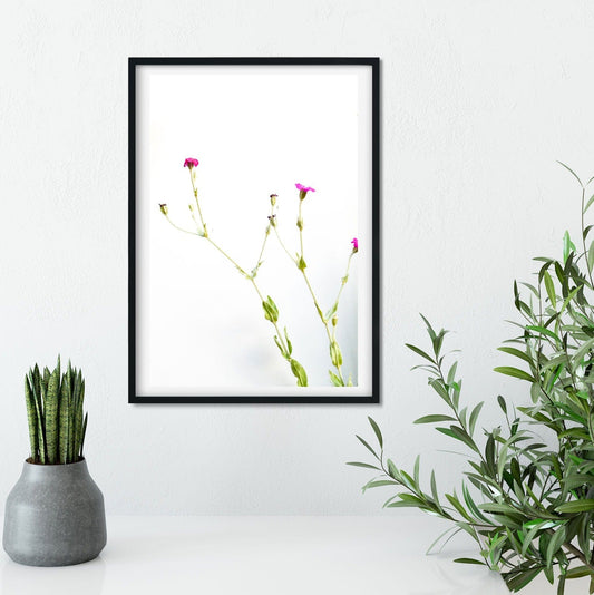 Pink flower print, English Wildflower photography - Rose Campion Lychnis White Framed Summer flower, minimalist Flower Botanical Print