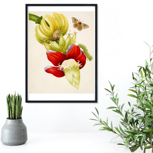 Framed Antique Banana Flower Print Botanical Wall Art Print