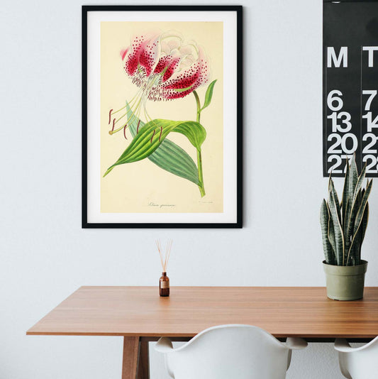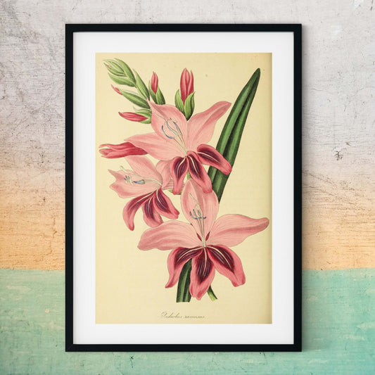 Lily Pink Flower Art, Framed antique Botanical Prints