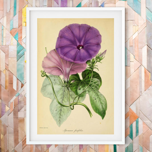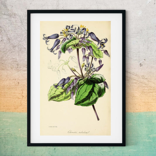 Purple flower poster, Clematis flower art vintage Botanical Print