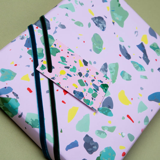 Terrazzo Pale Pink Wrapping Paper gift tag Set, luxury gift wrap
