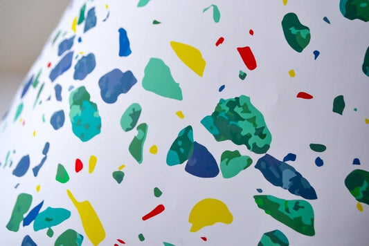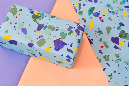 Grey Terazzo Wrapping Paper concrete gift tag Set, Colourful Illustration pattern chic wrapping paper, Fun Luxury Gift Wrap Birthday Wrap
