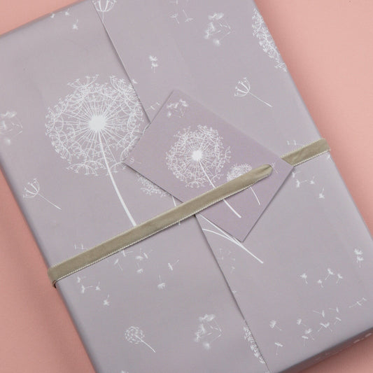 Dandelion Seeds Grey Wrapping Paper, botanical wrapping paper sheets