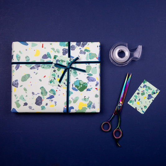 Terazzo White Wrapping Paper & gift tag Set, Luxury Gift Wrap