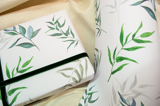 Willow leaf Wrapping Paper, Recyclable Botanical green wrapping paper