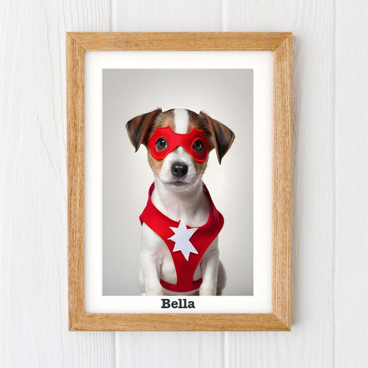 Children's Superhero tiny Dog print, Jack Russell puppy print superhero gift