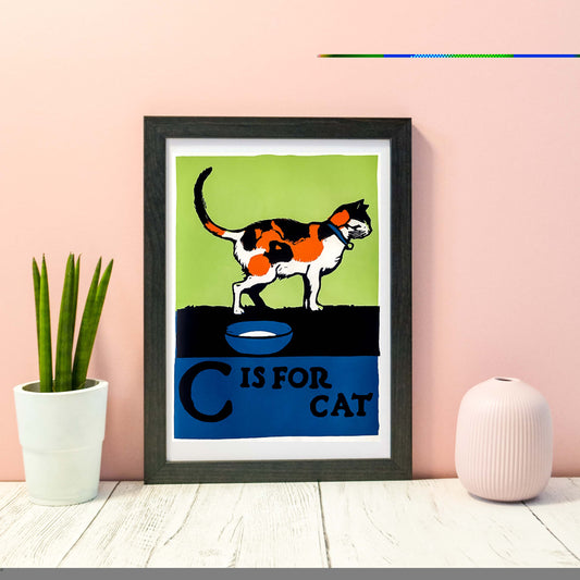 C is for Cat print, letter C animal alphabet cat poster nursery prints