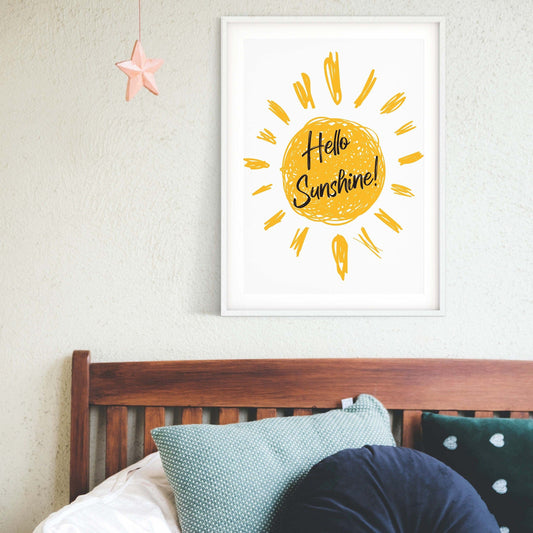 Hello Sunshine Illustration Print, Nursery décor positive quote art print, Playroom art rise and shine framed print, You are my sunshine