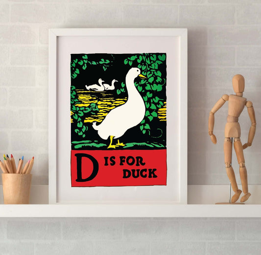 Framed Vintage Duck Print, D is for Duck art Vintage Nursery prints