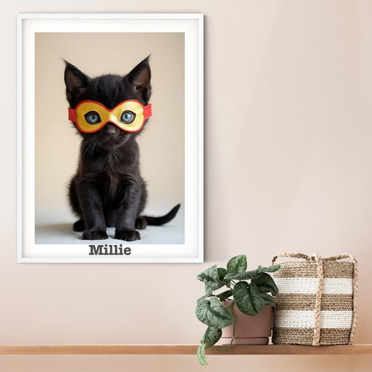 Children's Superhero Black Cat print, Kitten print superhero gift