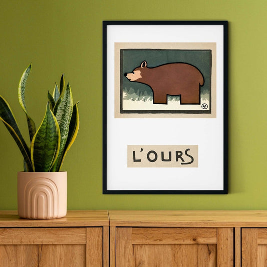 Framed Vintage Bear Print, French Children's Bear art Nursery Print, L'Ours