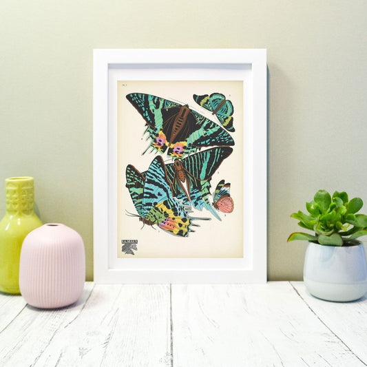 Framed Vintage Butterfly Print, Natural history butterflies Poster, butterfly Wall Art Print 15 of 16 A5 A4, A3, A2