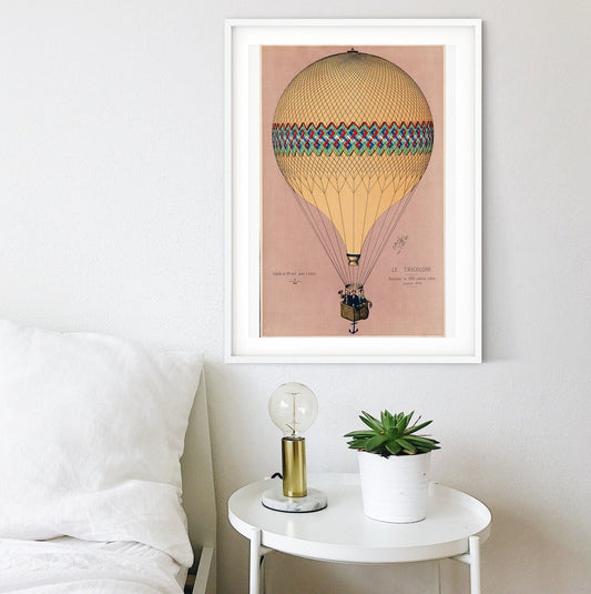 Framed print Hot air balloon art poster, vintage balloon art print, balloon room decor, old aviation, Balloon ride poster 2