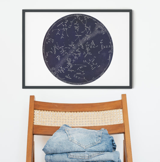 Framed Star Map print, antique stars chart - 1911 vintage star chart, astronomy celestial constellation star poster wall art A5, A4, A3, A2