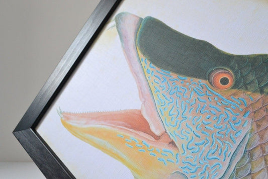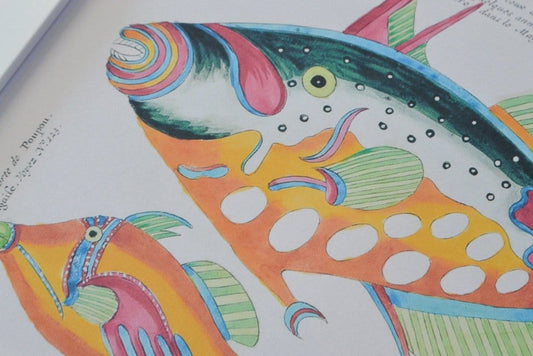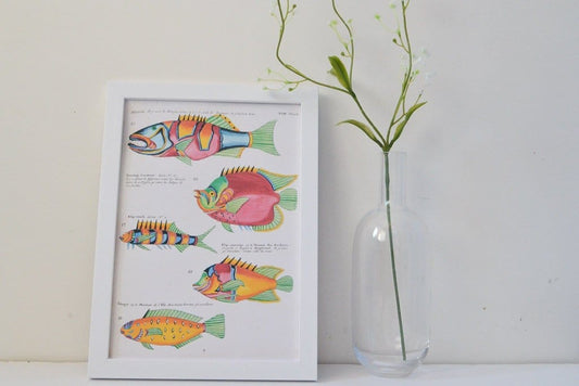 Framed Bright coloured Fish Print, vintage fish illustration print
