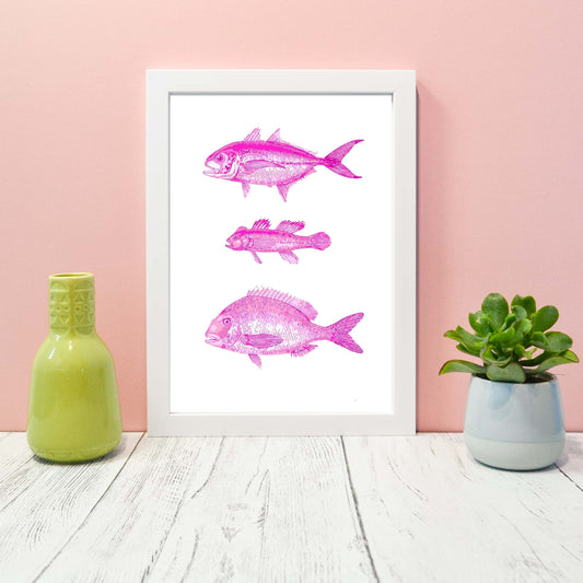 Pink Antique Fish Print, scientific drawing fish Poster, Pink fish Print