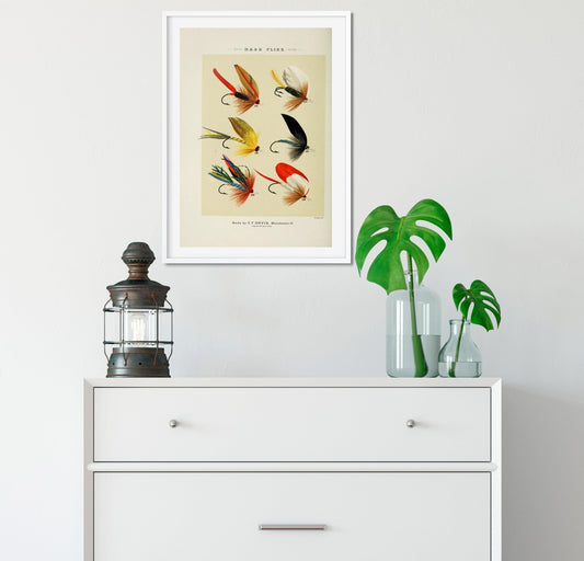 Framed Antique Fishing Bass Flies Print-Sporting fishing lure
