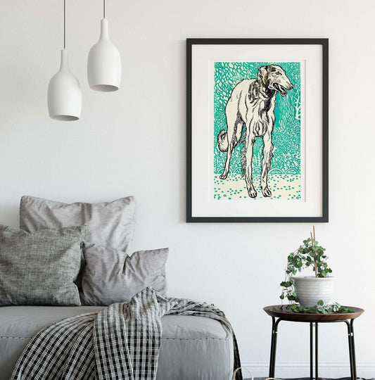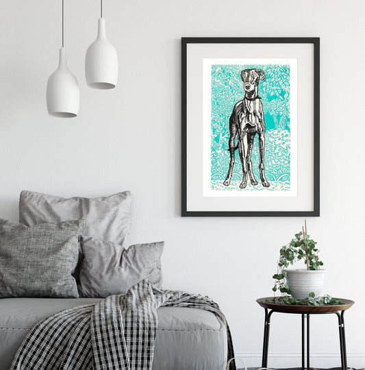 Framed greyhound dog print, vintage dog art print, greyhound poster