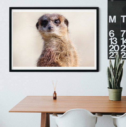 Framed Minimalist Meerkat Print, Meerkat wall Art for kids room, Modern Meerkat art print, personalised nursery animal photography print